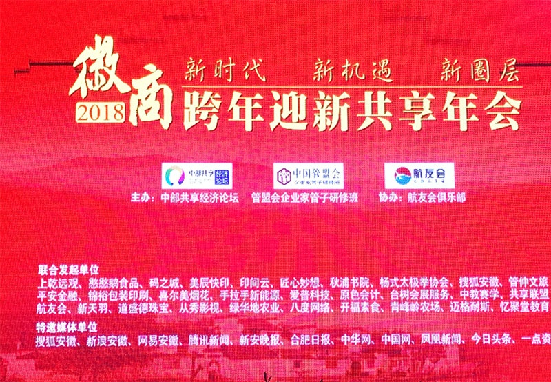 2018年1月27日,在合肥会宾楼大酒店大门外,随着全体出席嘉宾的集体合影结束,由中部共享经济论坛与管盟会企业家管子研修班主办、航友会俱乐部协办的2018徽商跨 [查看详细]
