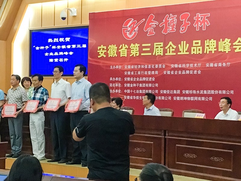 2016年6月18日,由安徽省经济和信息化委员会、安徽省科学技术厅、安徽省商务厅、安徽省工商行政管理局、安徽省企业品牌促进会共同举办的“安徽省笫三届企业品牌峰会”在安徽省人大会议中心隆重召开。