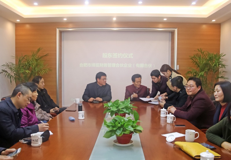 2017年2月24日上午九点,在安徽省博超控股集团有限公司的会议室内,合肥市博览财务管理合伙企业(有限合伙)股东签约仪式正式举行,二十多位投资人远道而来,郑重在入伙协议上签下自己的姓名。