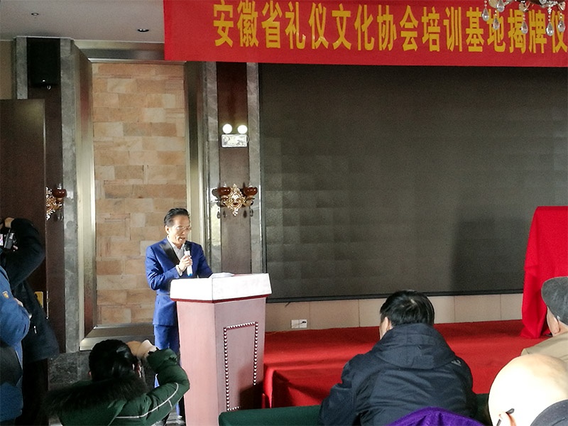 作为本次活动的主办方,刘维玉会长首先代表安徽省礼仪文化协会向出席活动的各位领导及嘉宾表示了衷心的欢迎与感谢,他在致辞中强调:此次培训基地的成立旨在为社会不同人群的学习培训提供便利,对提升本省传统文化培训服务业的品味档次、陶冶群众情操、丰富市民精神文化生活、促进教育培训事业的更高更快发展将起到积极的推动作用。