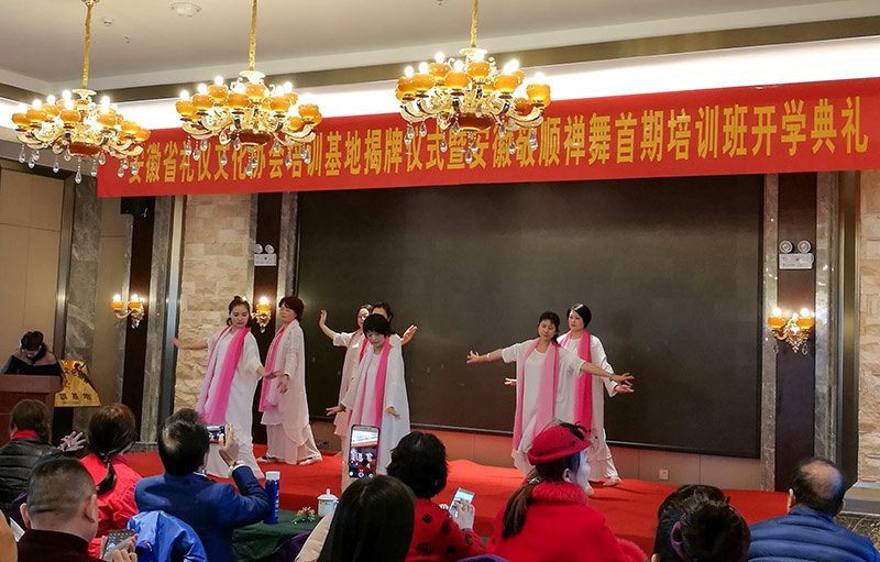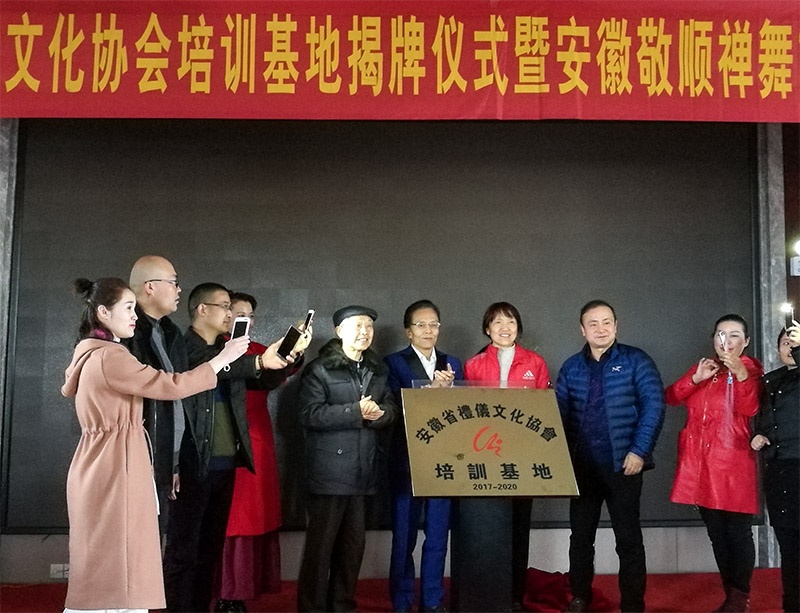 2018年3月8日,在风景秀丽的六安市紫荆花怡养小镇内,由安徽省礼仪文化协会主办、安徽敬顺文化发展有公司承办的安徽省礼仪文化协会培训基地揭牌仪式暨安徽敬顺禅舞首期培训班开学典礼在此正式举行。安徽省文化厅原厅长卞国福,安徽省妇联原副主席李晓黎,安徽省博超控股集团董事长、安徽省礼仪文化协会会长刘维玉生、秘书长徐鸿建,安徽敬顺文化发展有公司总经理李思红共同出席了本次仪式。
